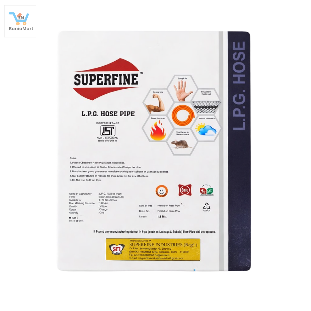 BaniaMart LPG Gas Stove Premium Pipe / Hose with Butterfly Clip Set delivers reliable safety and durability for your kitchen. This robust hose features a protective wire layer that shields against rodent damage, while the premium auto-grip design ensures a secure fit. Includes two butterfly clips for stable connections between your gas stove and cylinder. Built to withstand heat, water exposure, and accidental cuts, this essential accessory provides peace of mind with every use. Upgrade your gas setup with a hose engineered for long-lasting performance and maximum protection.