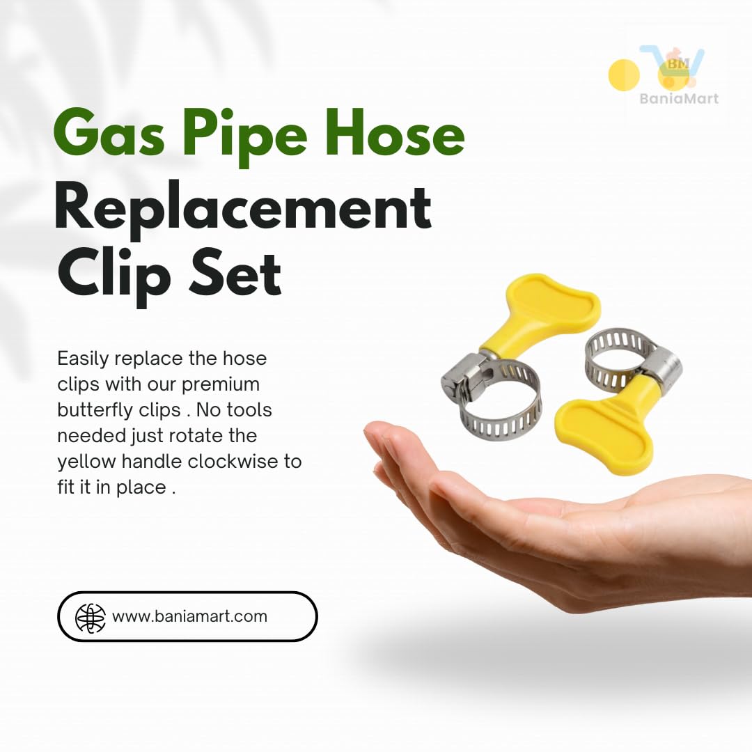 Keep your LPG gas stove running safely and efficiently with the BaniaMart Gas Stove Accessories Kit. This comprehensive set includes burner and nozzle cleaning pins that make removing blockages easy, ensuring a consistent flame. The durable rubber seal helps prevent gas leaks, while two reliable clips secure your pipe connections firmly. The kit also features heat-resistant metal control buttons for smooth and durable operation. Designed to fit most domestic LPG gas stoves, this easy-to-use kit is perfect for regular maintenance or replacing worn parts, enhancing stove safety and longevity in your kitchen.